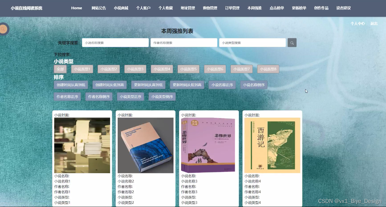 具体在系统设计上,采用了B/S的结构,同时,也使用java技术在动态页面上进行了设计,后台上采用Mysql数据库,是一个非常优秀的小说在线阅读系统。