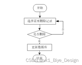 管理员可以对信息等进行信息的删除,对要删除的信息进行选中后,点击删除按钮,系统会询问是否确定,若点击确定,则系统会删除掉选中的信息,并在数据库内对信息进行删除,删除信息流程图如图3-6所示。