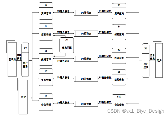 高校就业数据可视化管理系统总体分为前台用户模块和后台管理员模块。