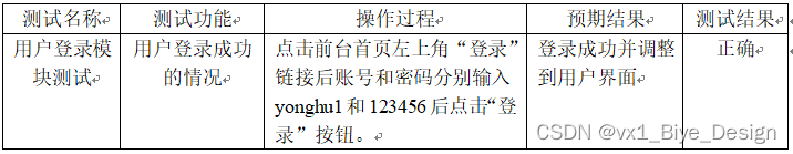 表5.1 用户登录功能测试表