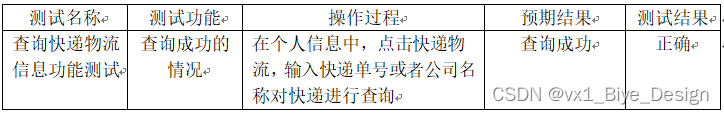 表5.3 查询快递物流信息功能测试表