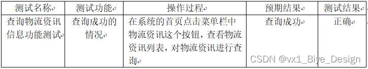 表5.4 查询物流资讯信息功能测试表