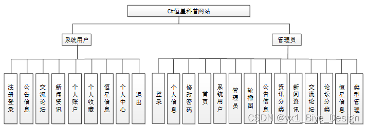 按照恒星科普网站的角色,我划分为了系统册用户管理模块和管理员管理模块这两大部分。