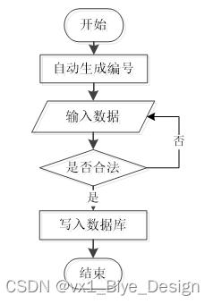 用户成功登入系统后就能够实现增加数据的操作,增加数据的编号是特定的,系统生成,用户不能随意填写,除了编号以外,其他增加信息用户自己填写,填写后的信息经过系统验证,验证合法通过就显示增加数据成功了,相反的话,就没有增加成功,图2-1显示的就是在增加数据时的流程。