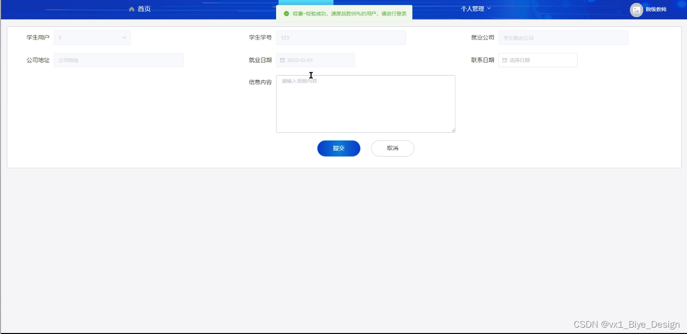 个人管理模块:个人管理模块主要对个人信息和密码的修改等。