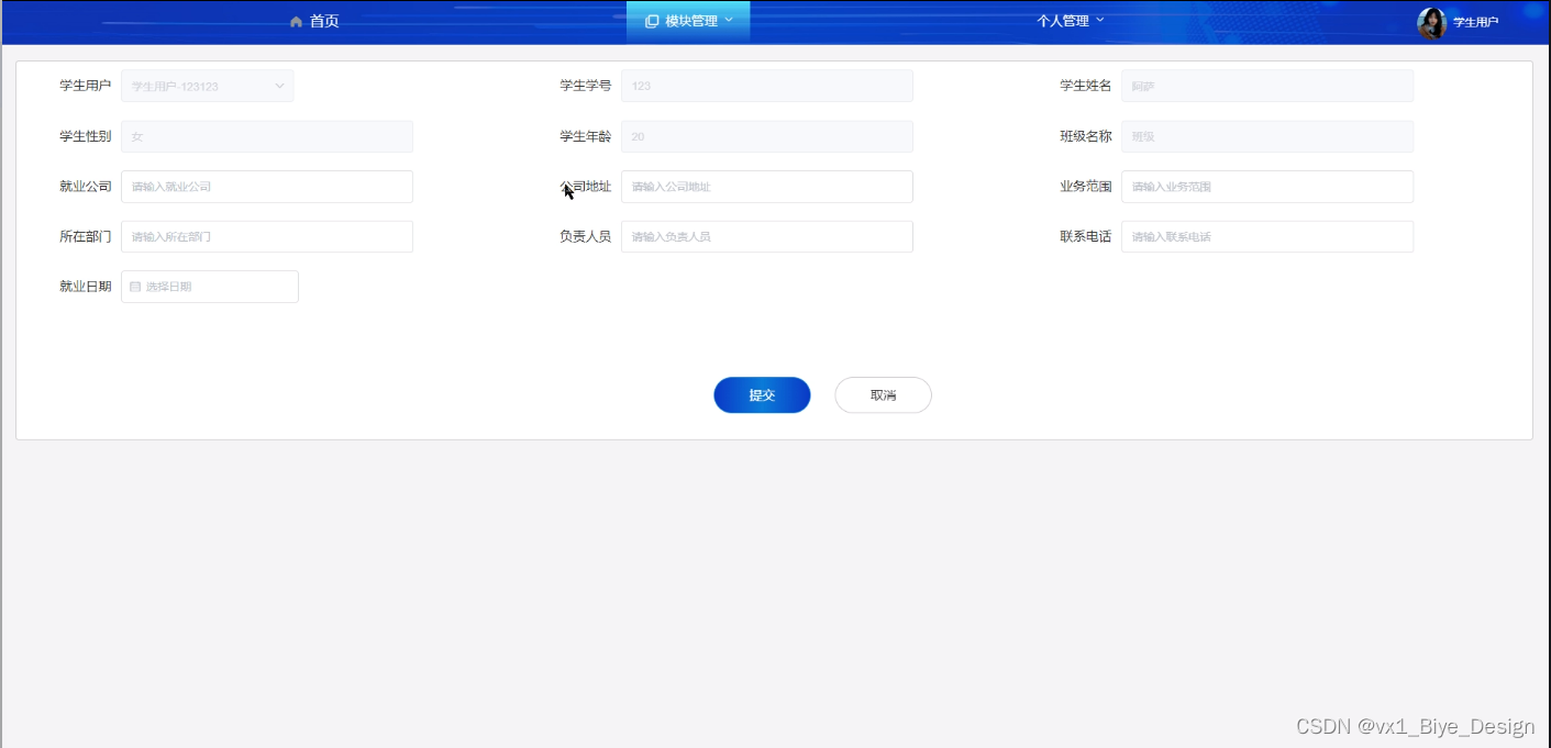 学生用户统计管理,在学生用户统计管理页面可以查看到已就业学生的参数等操作,如图5-12