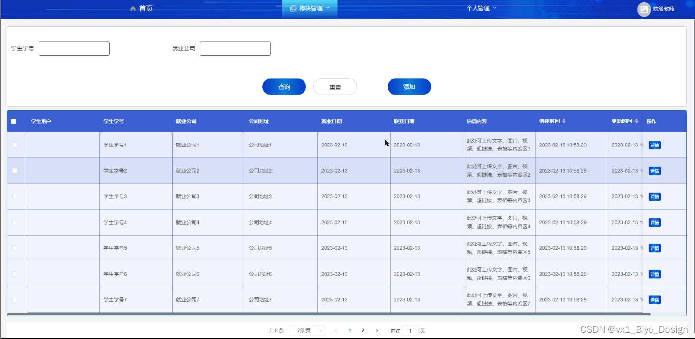 模块管理:模块管理主要是对就业信息的添加和管理。