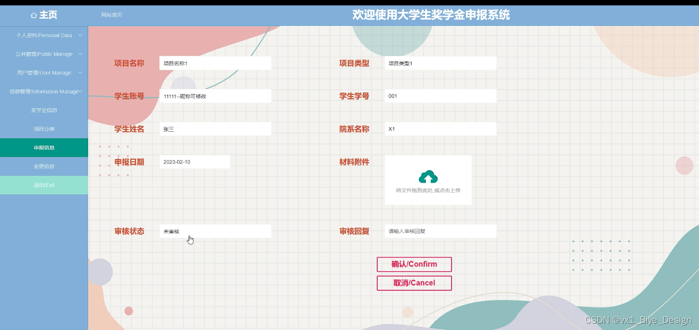 查看学生提交的奖学金申请数据,管理员有权利维护它。