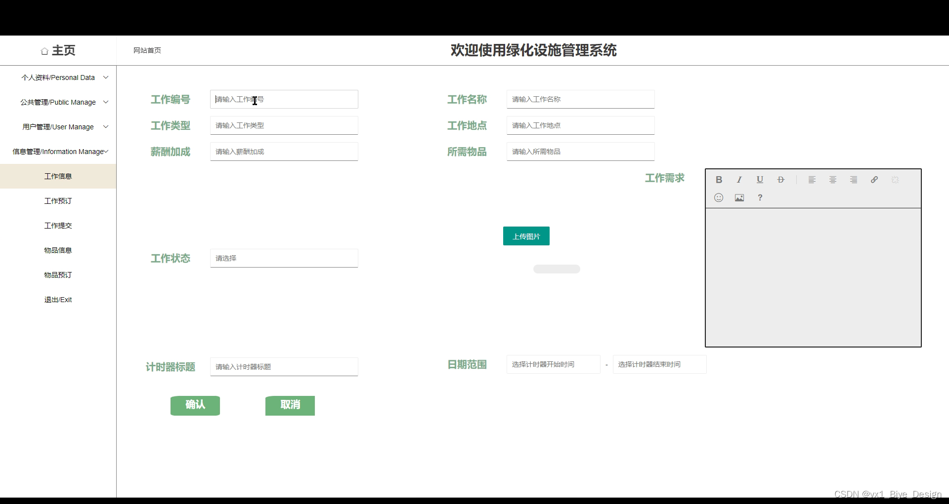 工作信息:管理员发布绿化工作任务信息。