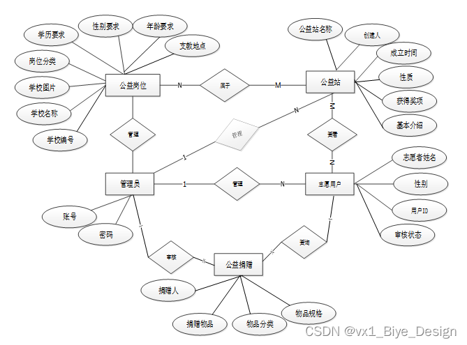 下面是整个公益支教平台中主要的数据库表总E-R实体关系图。