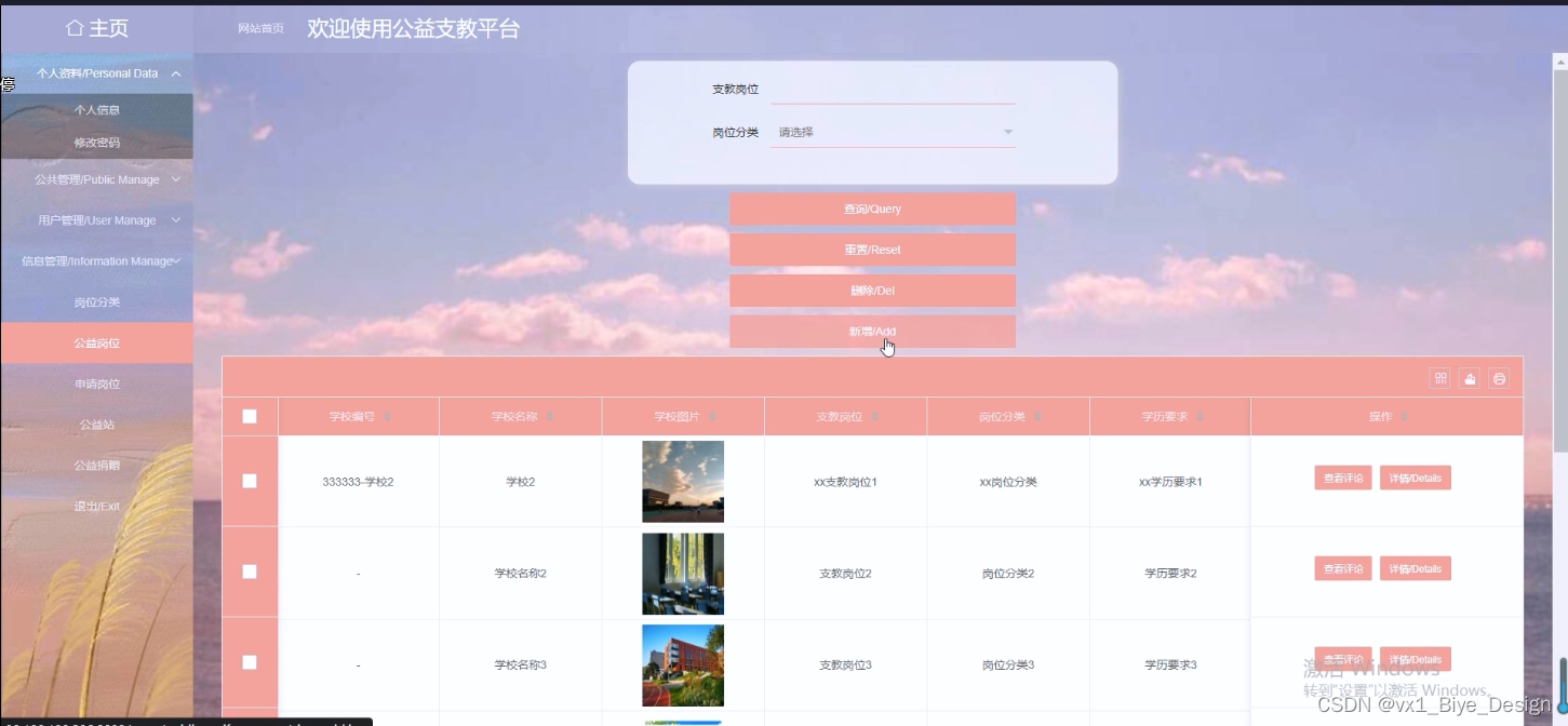 本文以Java语言为开发技术,实现了一个公益支教平台的设计。公益支教平台的设计的主要实现功能包括:岗位分类、公益岗位、申请岗位、公益站、公益捐赠等系统管理功能模块。通过这些功能模块的设计,基本上实现了整个公益支教平台的设计信息管理的过程。具体在系统设计上,使用Java语言在动态页面上进行了设计,台上采用Mysq|数据库,是一个非常优秀的公益支教平台的设计。
