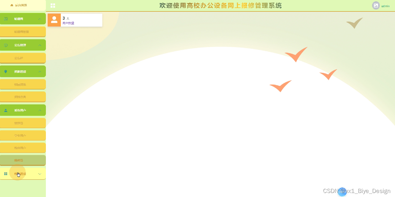 Key words: University Office Equipment Online Repair Application Management System, SSM, MySQL.