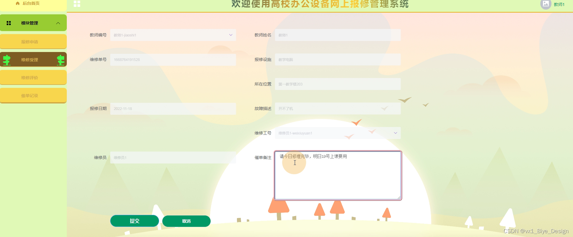 关键词:高校办公设备网上报修管理系统,SSM,Mysql