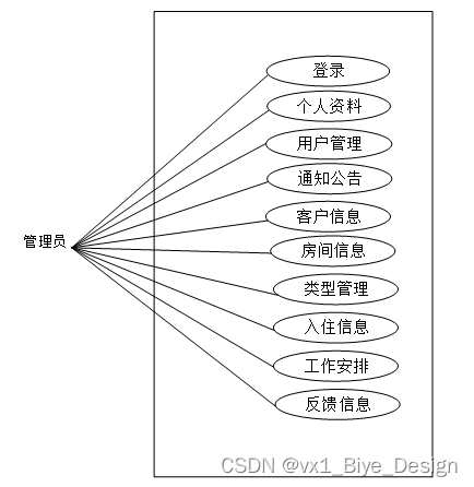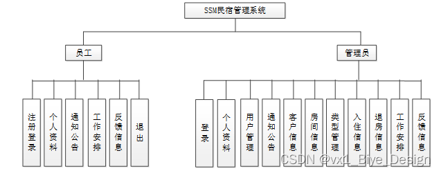 通过了解对民宿管理系统的真实需求后,将民宿管理系统所需要的角色划分整理成了管理员和员工用户。