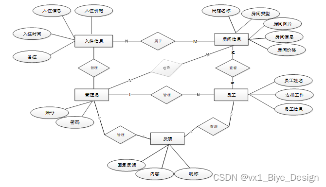 下面是整个民宿管理系统中主要的数据库表总E-R实体关系图。