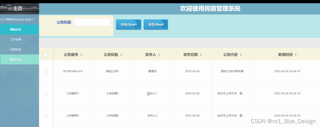 民宿管理系统测试是为了检验软件是否达到设计要求,是否存在错误,通过测试的方法来检查民宿管理系统,以便发现民宿管理系统中的错误。测试工作是保证民宿息管理系统质量的关键。