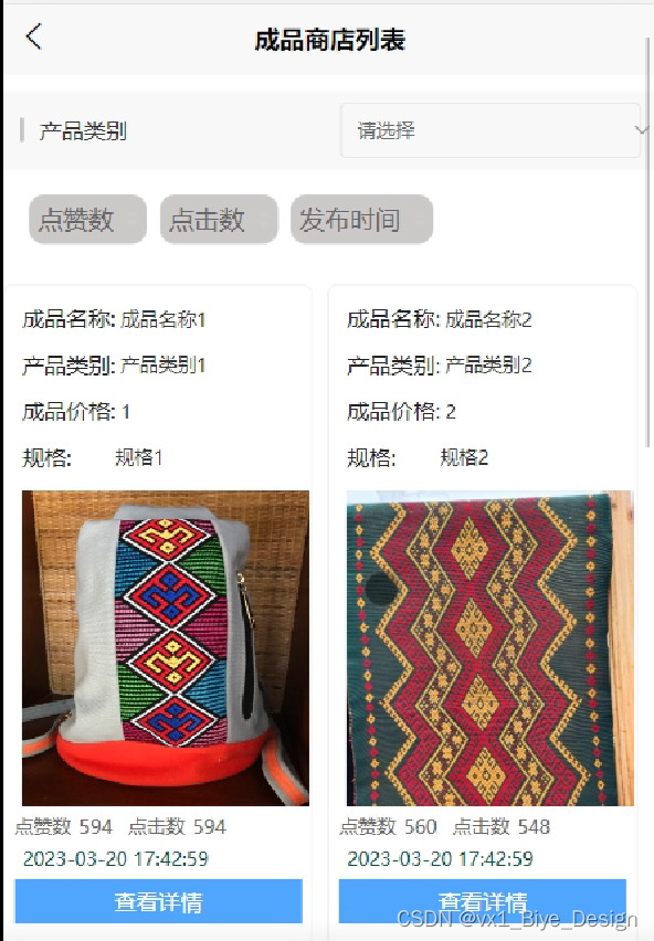 (3)成品商店管理:主要包括黎锦成品的展示,可供于用户进行成品的查看以及选择购买。