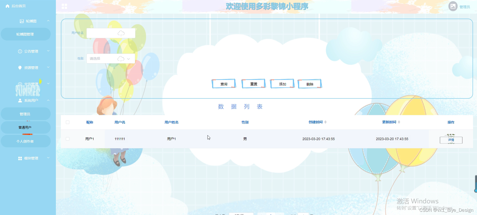 用户管理界面如下图所示。