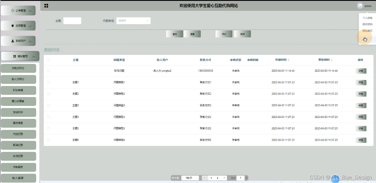 关键词:大学生爱心互助代购网站;springboot框架;mysql数据库;java语言;