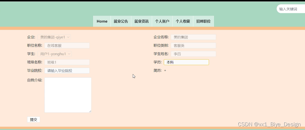 随着计算机互联网技术的迅猛发展,各行各业都已经实现采用计算机相关技术对日益放大的数据进行管理。该课题是大学生就业推荐系统为核心展开的,主要是为了实现学生就业信息化管理和用户在线投递简历的需求。