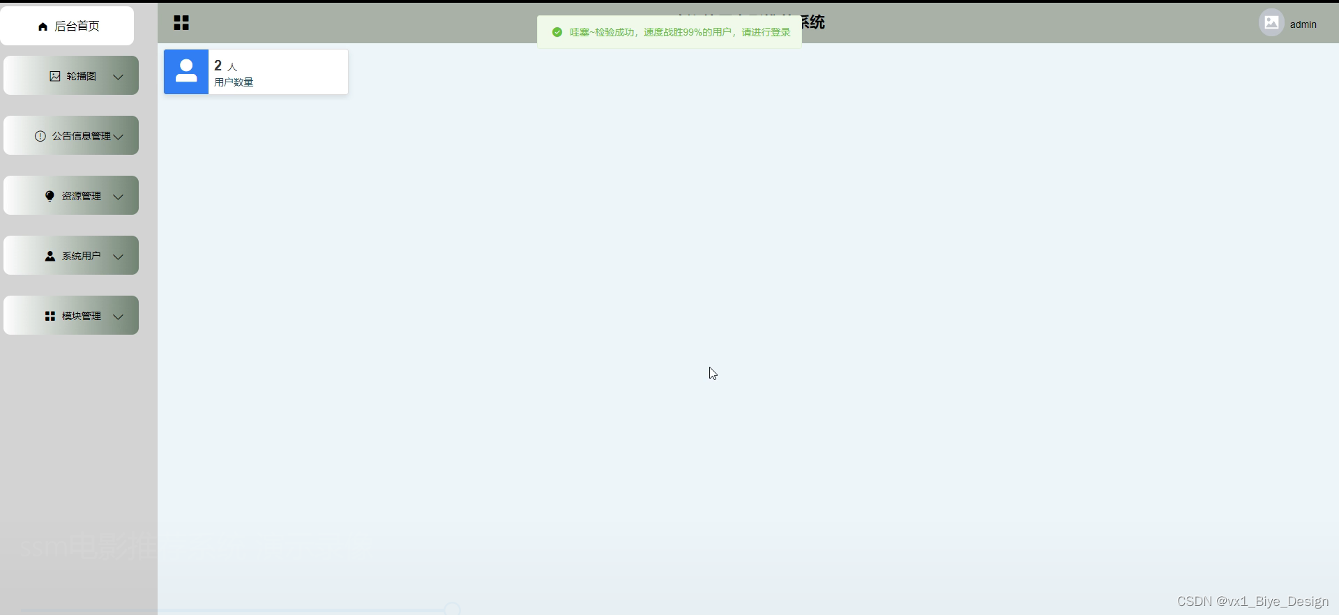 本电影推荐系统采用Java技术,Mysql数据库开发,充分保证了系统稳定性、完整性。