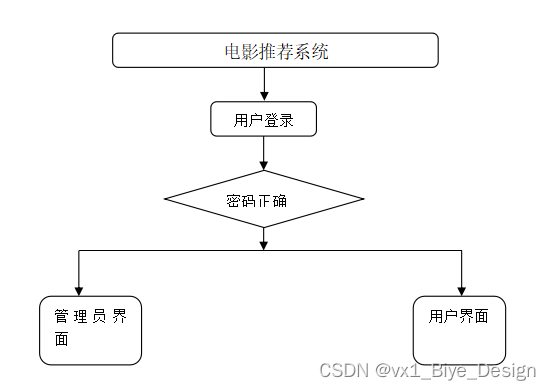 用户需要拥有属于自己的账号和密码,且必须正确,这样才能顺利登录到系统中。进入网站后,用户可以自行查询各种电影操作。具体流程如下图3-1所示: