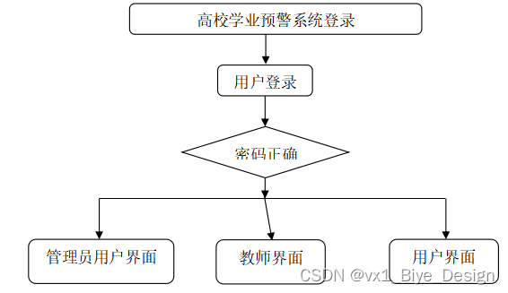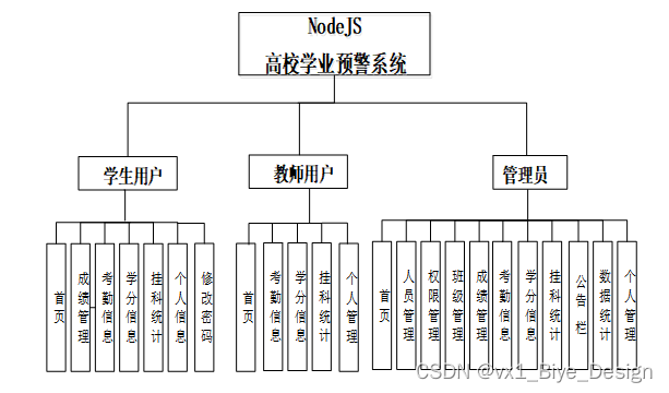 使用高校学业预警系统的用户分管理员、学生用户、教师用户三个角色的权限子模块。