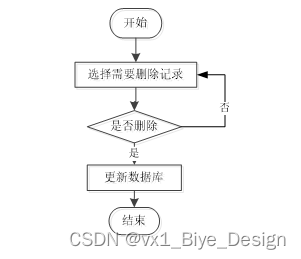 用户选择要删除的信息并单击删除按钮。系统提示是否删除信息。如果用户想要删除信息,系统将删除信息。系统数据库删除信息。删除信息流程图如图3-3所示。