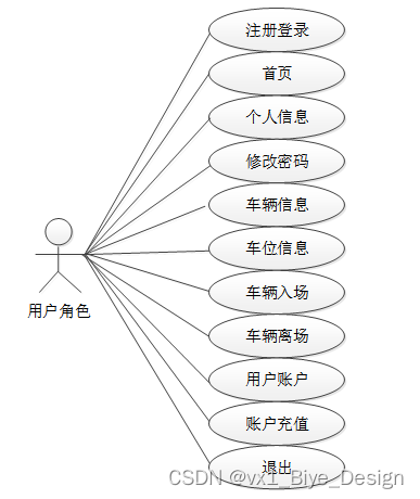 车库存取管理系统中用户角色用例图如图2.1所示: