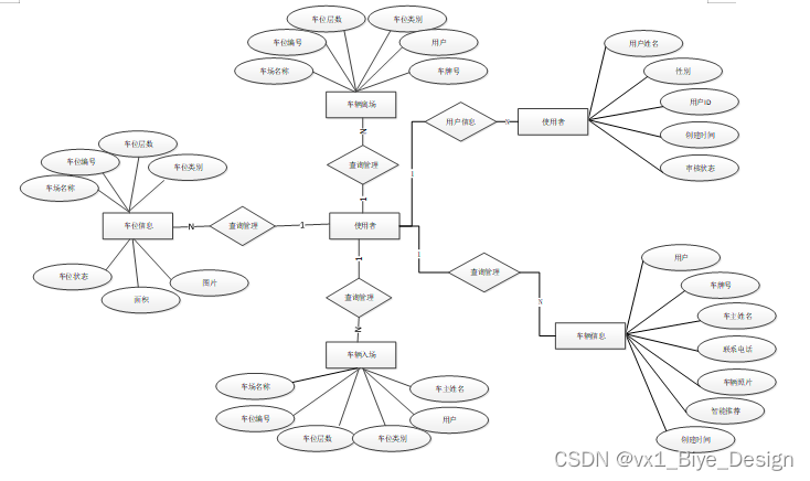 下面是整个车库存取管理系统中主要的数据库表总E-R实体关系图。