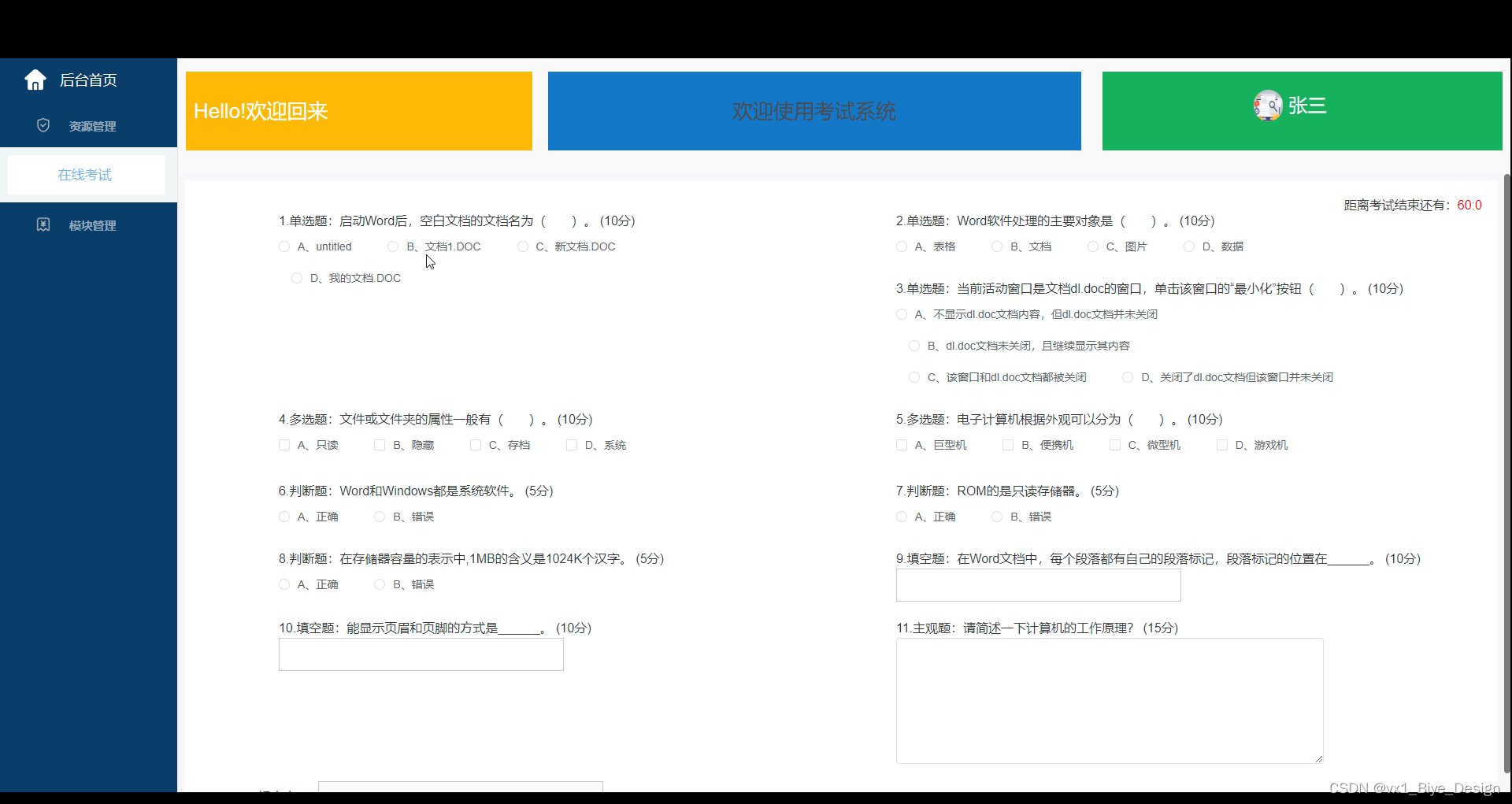 在线考试界面如下图所示。