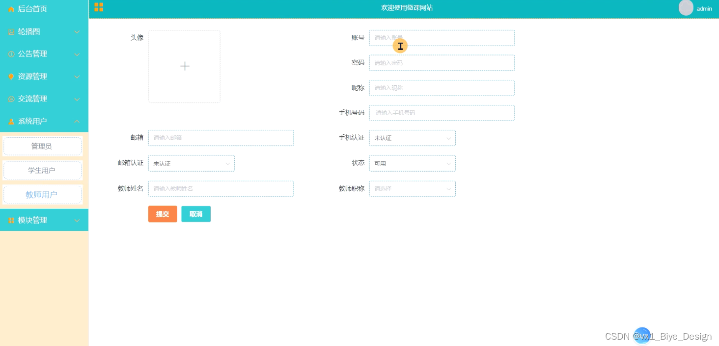 实用性方面,本次设计的主要任务是在微课网站内课程信息、课程学生、课程成绩、课程公告、资料共享等,符合当前潮流的发展。从用户角度出发,同时也考虑系统运营成本和人力资源,采用网络上的便捷方式,实现线上业务,使得业务流程更系统,也更方便用户的体验,比较实用。