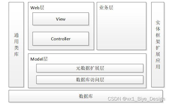 本微课网站的架构设计主要分为可以3层,主要有Web层,业务层,Model层。其中web层还包括View层和Controller层,Model层包括元数据扩展层和数据访问层。