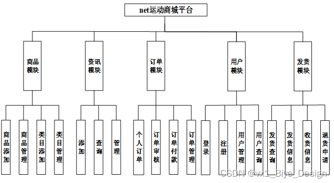 按照运动商城平台的角色,我划分为了用户管理模块和管理员管理模块这两大部分。