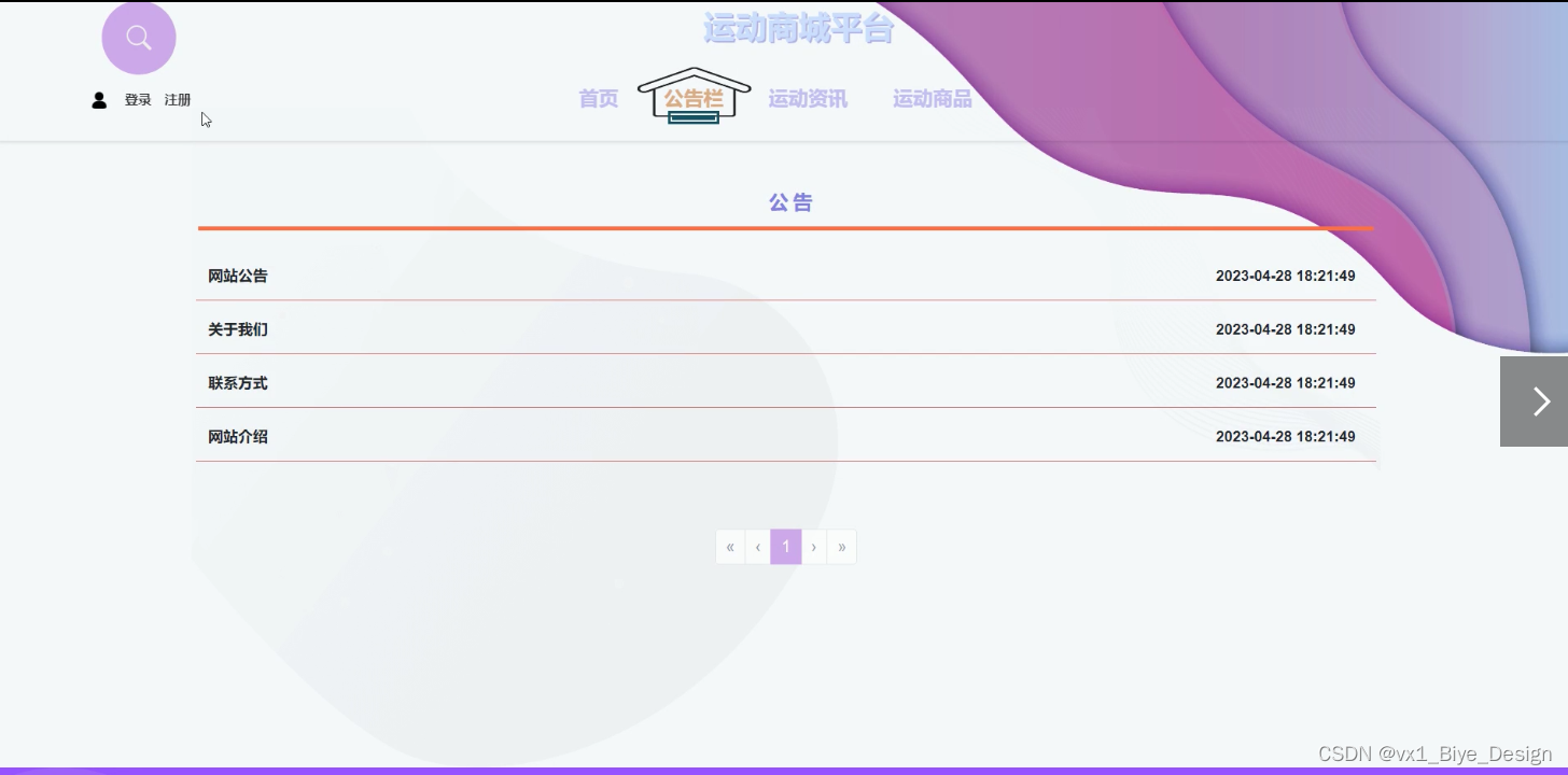 (3)系统公告:在前台点击“系统公告”这一菜单按钮以后就会进入到系统公告界面。