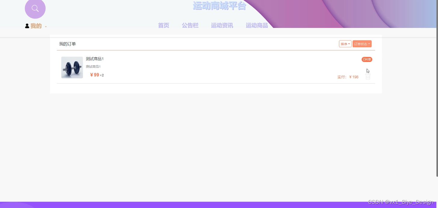(7)我的订单:用户在提交订单后,可以对提交的订单进行管理。