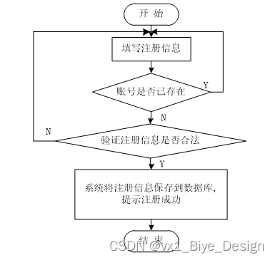 游客可以查看系统信息,也有注册成为用户的权限。其用注册流程图如图4-2所示,注册界面展示如下图4-3所示。