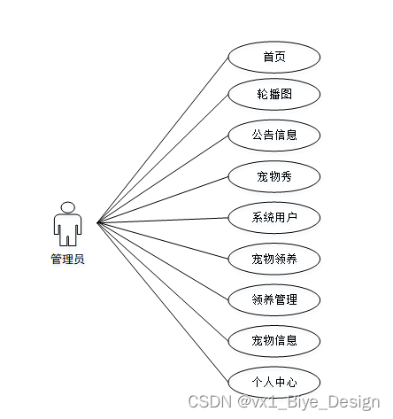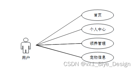 用户进入系统可以查看首页、模块管理(领养管理、宠物信息)、个人中心操作。用户用例图如图3-1所示。