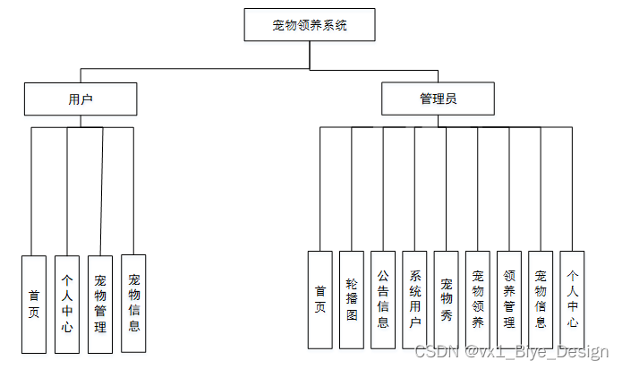 通过系统需求分析,该宠物领养系统的设计与实现功能结构图如图4-1所示: