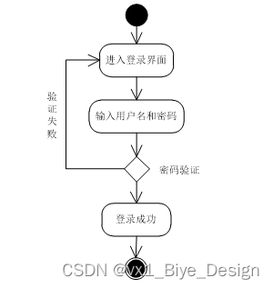 用户可进行登录使用更多功能,首先进入用户登录界面,输入用户账号和密码,后台对账号和密码信息进行核对验证,验证成功则页面直接显示登录用户昵称代表登录成功,否则返回用户登录界面。用户登录活动图如下图。