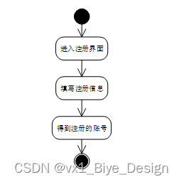 用户管理针对所有用户和管理员。未注册用户点击注册,进入注册页面填写新用户信息,得到自定义生成账号后,注册完成。未注册用户注册的活动图如下图所示。