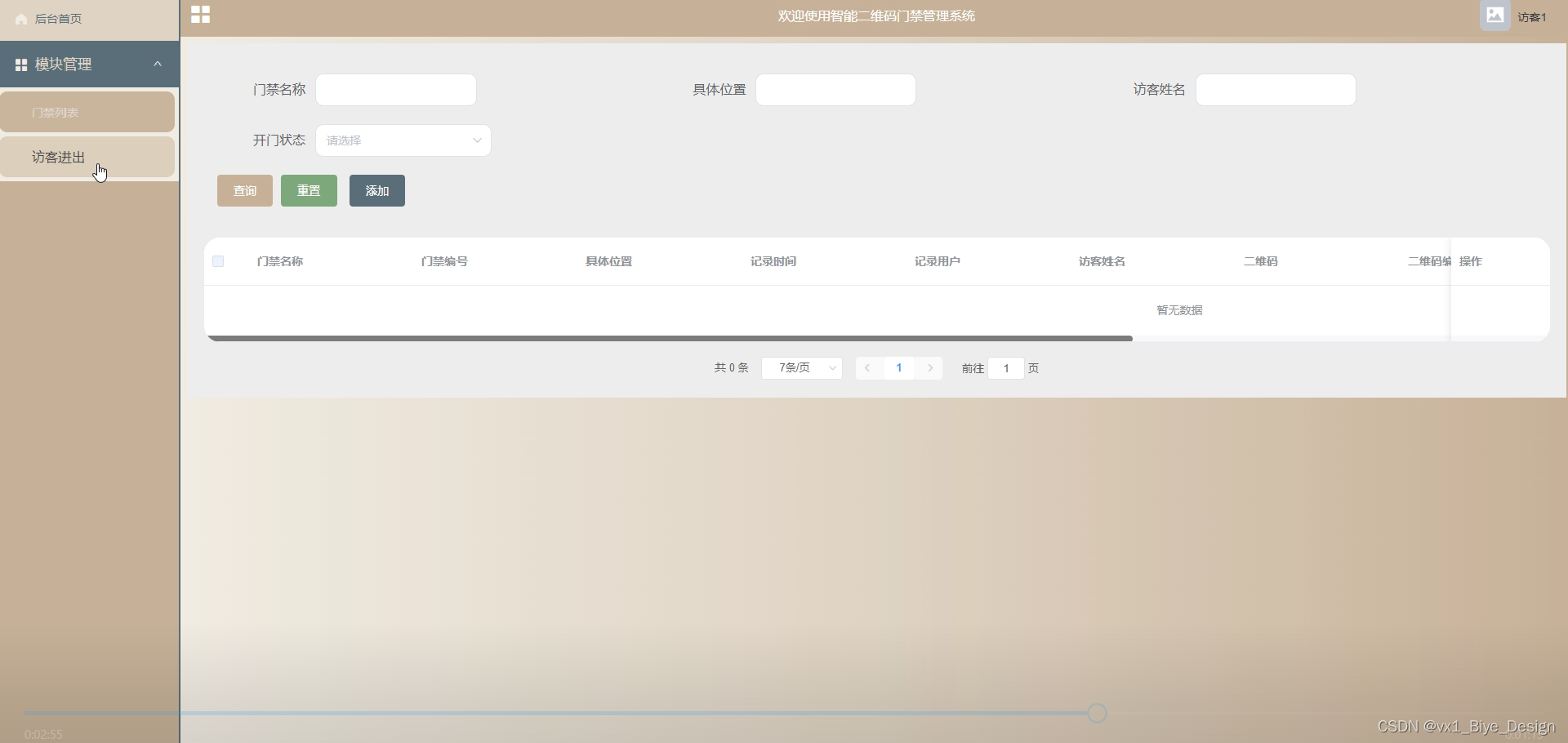 访客进出管理,存储访客的进出信息。