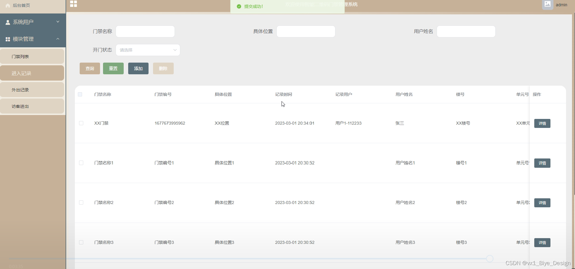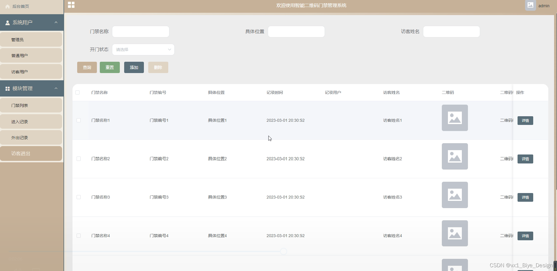 - 门禁列表模块