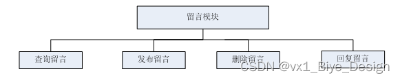 酒店住宿预定系统是一个交流性质的公开平台,会员用户可以在平台上交流,增加用户之间的互动性。但是同时也为了更好的规范留言的内容,给予管理员删除不合适的言论的功能,所以需要专门设计一个留言管理模块,具体的结构图如下: