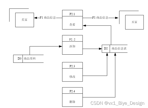 将商品信息维护进行细化得到商品信息管理二层数据流程图,如下图所示。