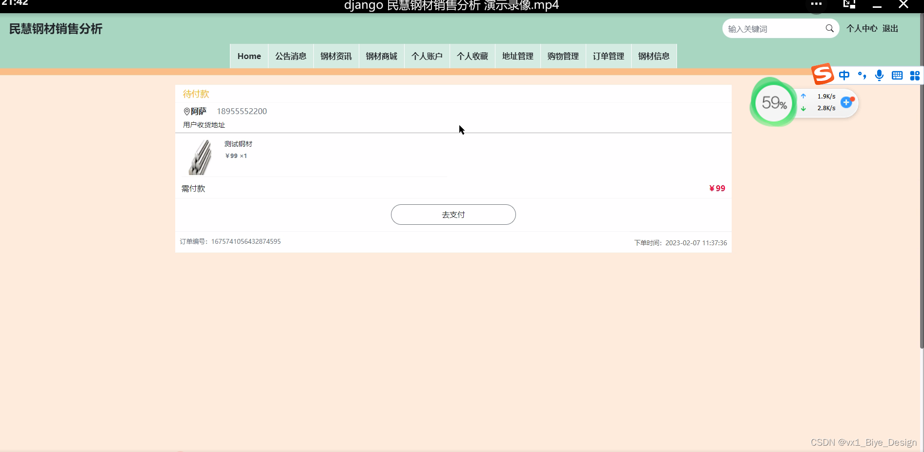 本系统主要是提供给用户一个购买钢材的平台,通过价格优势吸引众多消费者来购买,实现正常运营。本文主要是采用Python语言、Django技术、MySQL数据库、Apache服务器作为开发平台,系统采用B/S结构进行开发,完成一个钢材销售销售商城。目标是实现一个以销售为中心的计算机系统,构建用户信息与账号,账号与订单信息有机结合的业务系统。