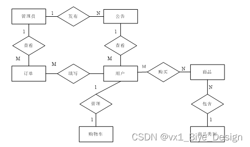 首先,用户登录系统,进行商品的下单,下单时要指定商品名称、购买数量、备注等重要信息,生成订单,管理员登录后台进行用户订单审核,审核通过,进行商品发货,用户购买成功,用户可以查看自己的订单、有权删除或修改订单。