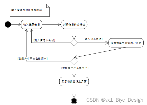 总体业务流程:以管理员的身份在登录页面输入账号和密码,经过数据库身份验证,验证成功后登录系统主页,可以使用系统,管理系统等功能操作 。