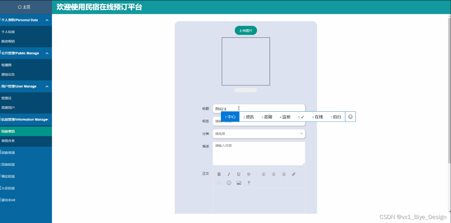民宿资讯发布的关键代码如下。