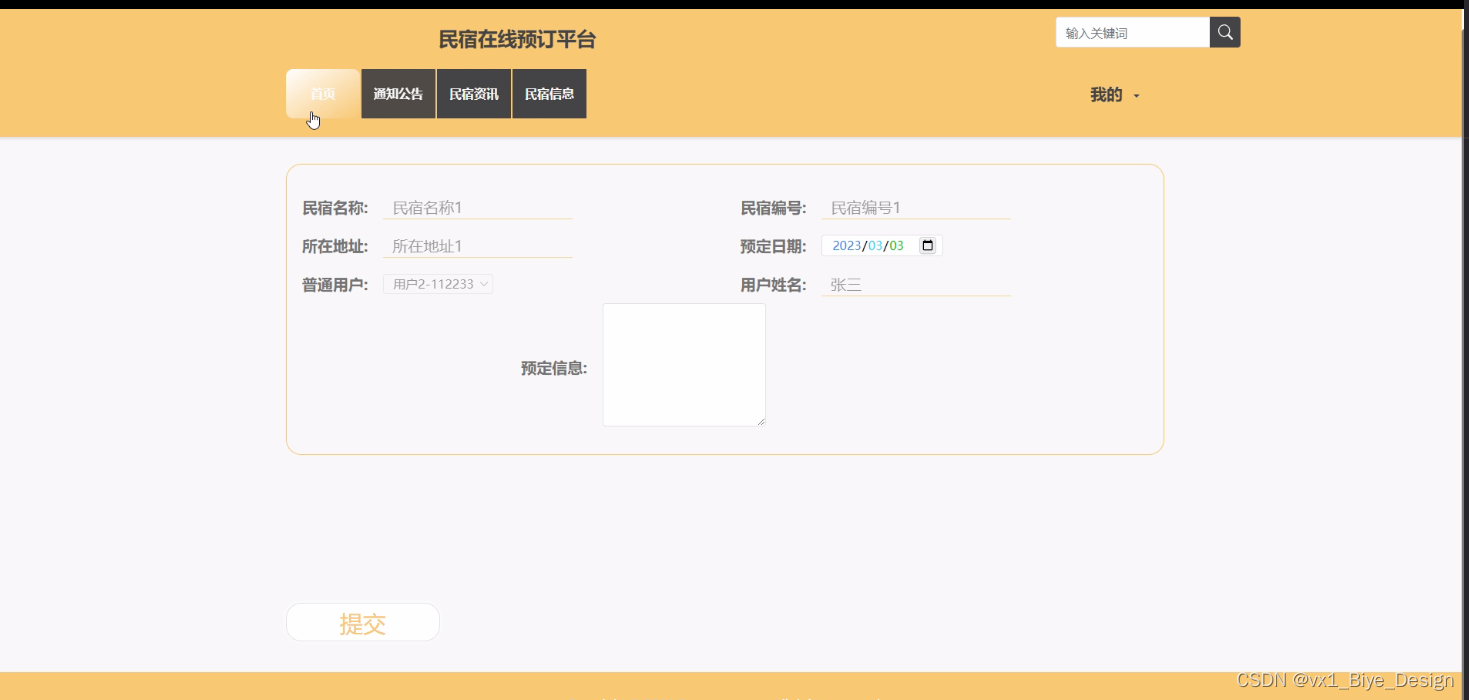民宿预订:用户根据自己的需求选中某个民宿进行预订操作。